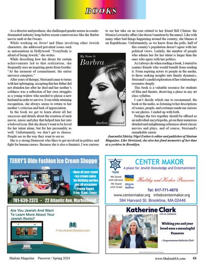 Journalist Shirley Nigri Farber is editor and publisher of Shalom Magazine www.ShalomMA.com . Like Streisand, she also has fond memories of her time at a yeshiva in Brooklyn.