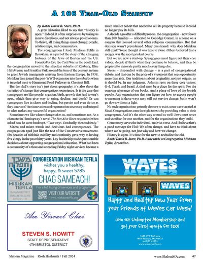 A decade ago after a difficult process, the congregation – now fewer than 200 families — relocated to Coolidge Corner, in a home on a campus that housed several other religious communities. But that decision wasn’t preordained. Many questioned: why does Mishkan still exist? Some thought it was time to close. Others believed that a merger was the most prudent course.